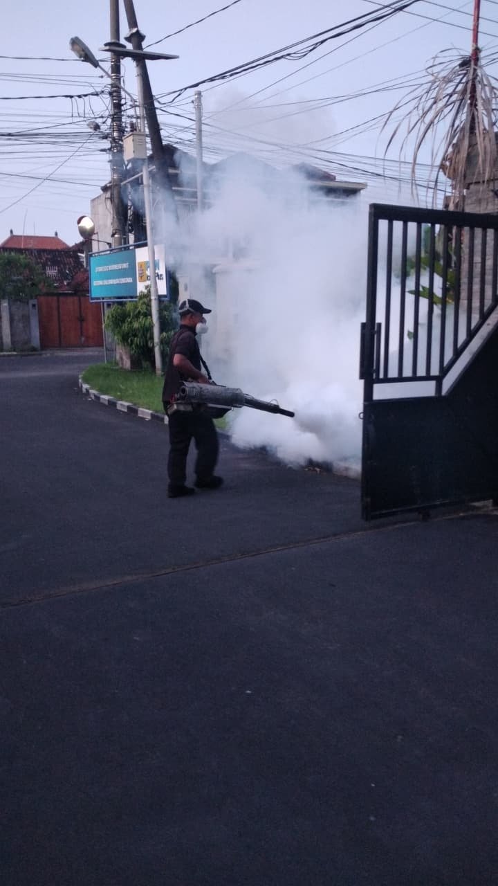Fogging dilakukan secara menyeluruh dan terencana di berbagai titik strategis, meliputi ruang kerja, area parkir, taman, selokan, ruang utilitas, hingga sudut-sudut bangunan yang berpotensi menjadi tempat berkembang biaknya nyamuk. Proses pelaksanaan dilakukan oleh tenaga profesional dengan menggunakan cairan fogging yang aman sesuai standar kesehatan lingkungan, sehingga tidak mengganggu aktivitas kerja karyawan serta tetap menjaga kenyamanan di area perkantoran.