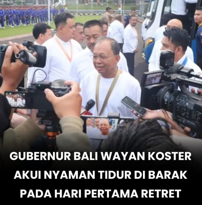 Gubernur Bali Wayan Koster mengungkapkan kenyamanannya saat mengikuti retret kepala daerah gelombang kedua yang digelar di barak praja Institut Pemerintahan Dalam Negeri (IPDN), Jatinangor, Sumedang, Jawa Barat. Dalam keterangan persnya pada Senin (23/6), Koster menyampaikan bahwa dirinya tidur nyenyak di barak tersebut pada malam pertama kegiatan. “Kemarin jam 10 malam sudah masuk kamar. Nyaman, dingin, ‘kan udara luarnya dingin. Sangat nyaman,” ujarnya. Suasana asrama yang sederhana namun teratur itu menurutnya justru memberikan pengalaman unik sekaligus menyegarkan, terlebih dengan suhu malam hari di kawasan Jatinangor yang sejuk.