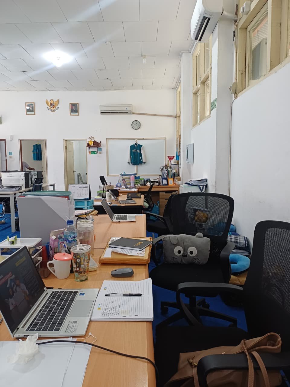 Selain itu, kursi kerja yang tersedia dirancang untuk mendukung postur tubuh yang baik dan kenyamanan jangka panjang. Fasilitas ini tidak hanya berfungsi sebagai tempat duduk, tetapi juga mendukung kesehatan karyawan dengan mengurangi rasa lelah saat bekerja dalam waktu lama. Penataan meja, kursi, dan laci yang seragam juga membuat suasana kantor terlihat lebih rapi serta mendukung produktivitas harian.